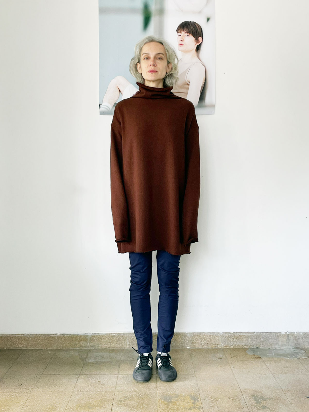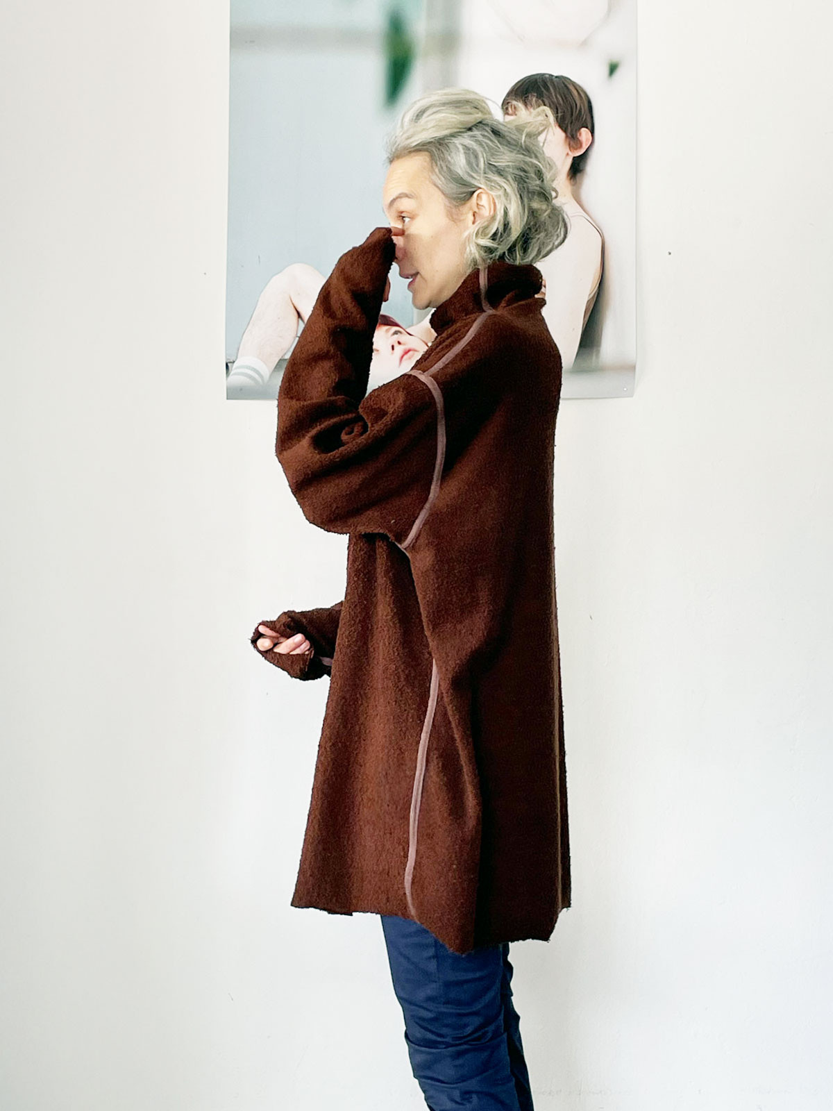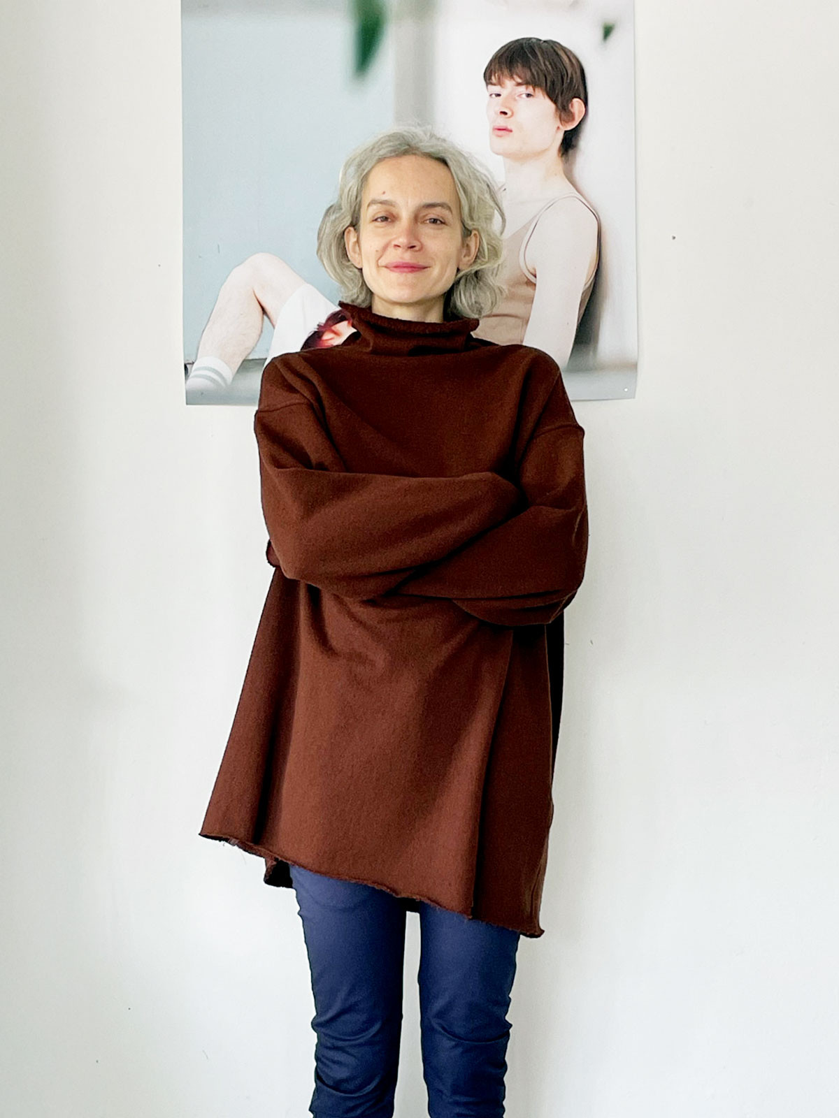 - Chocolate brown color relaxed silhouette sweater