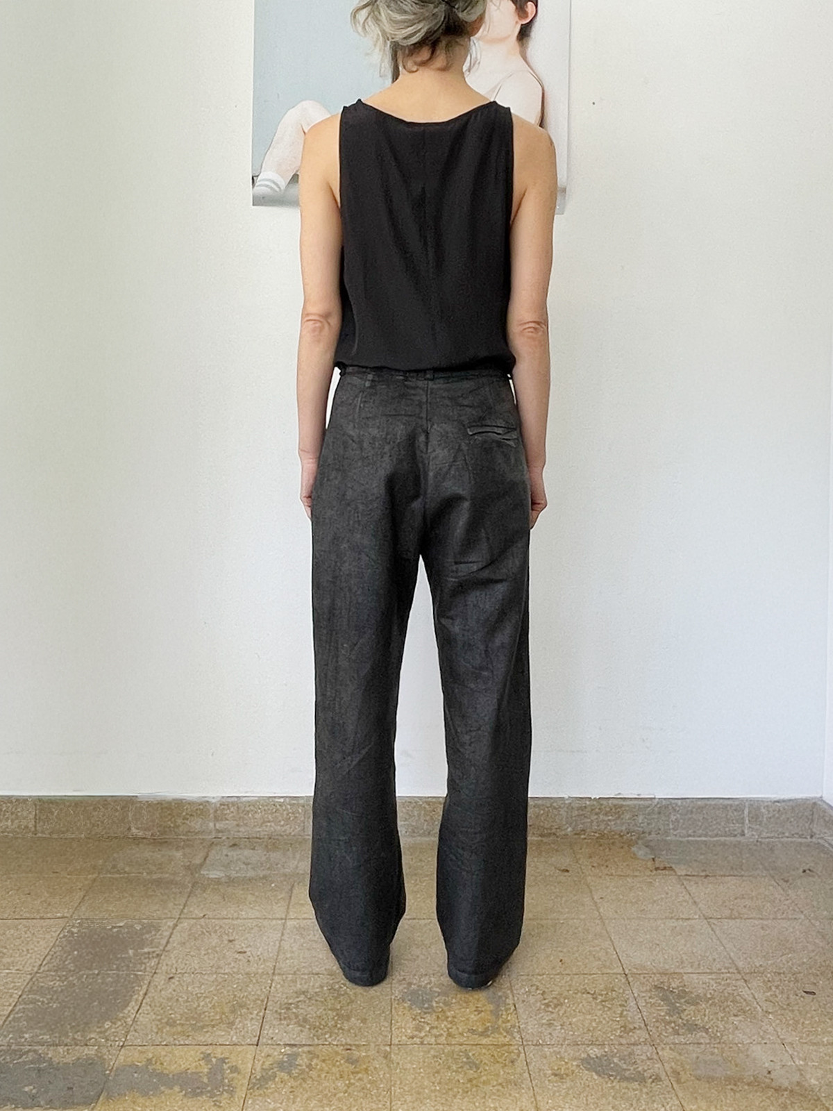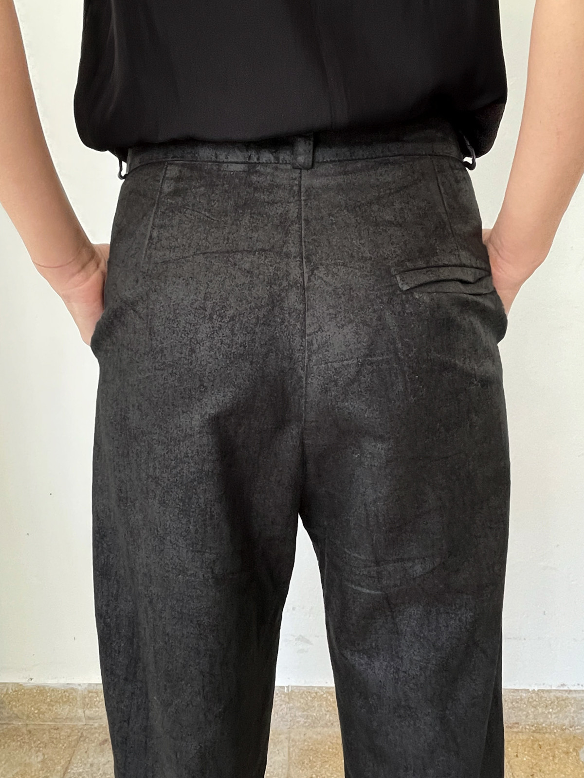 Pleated Washed Black Pants