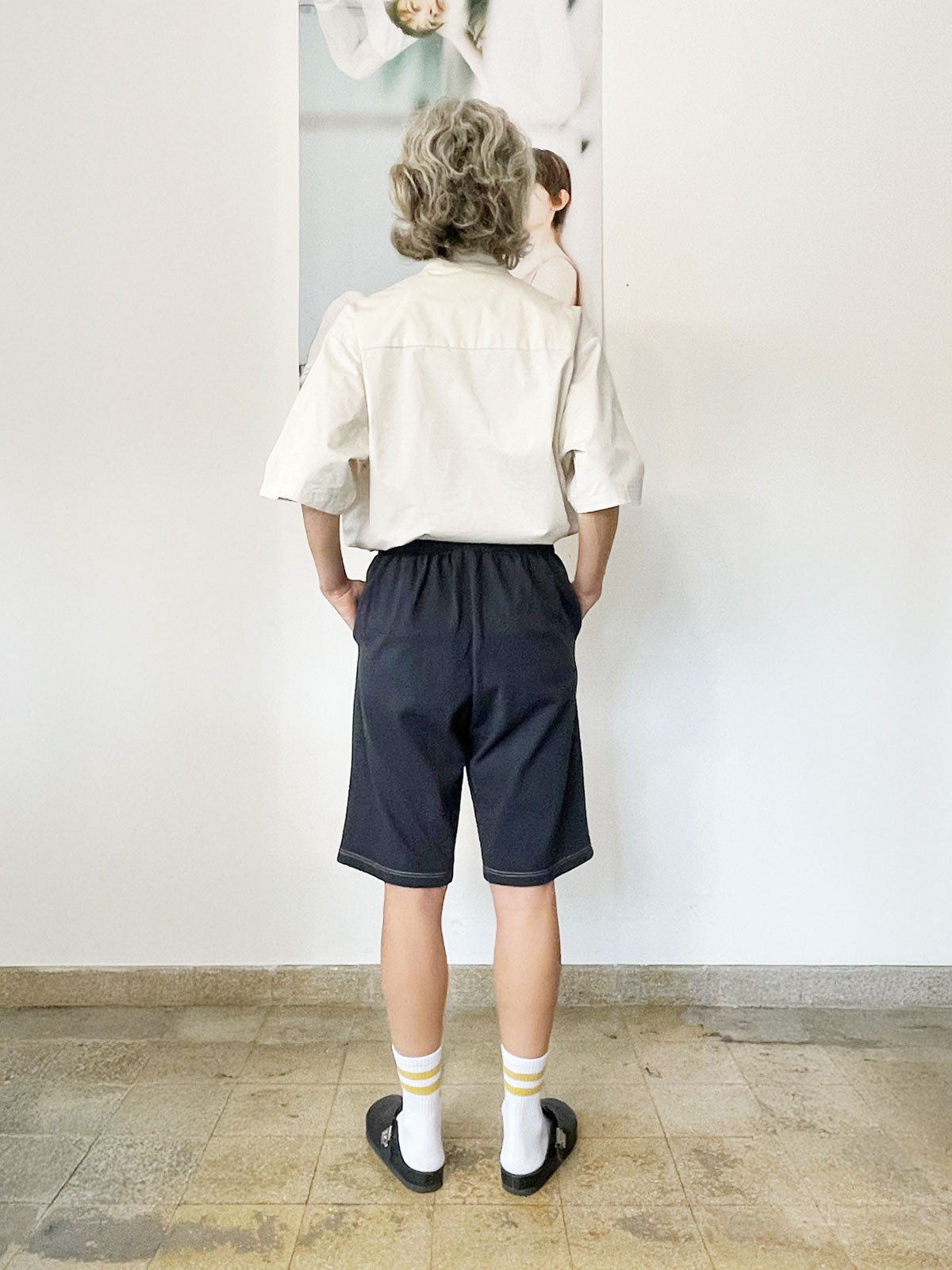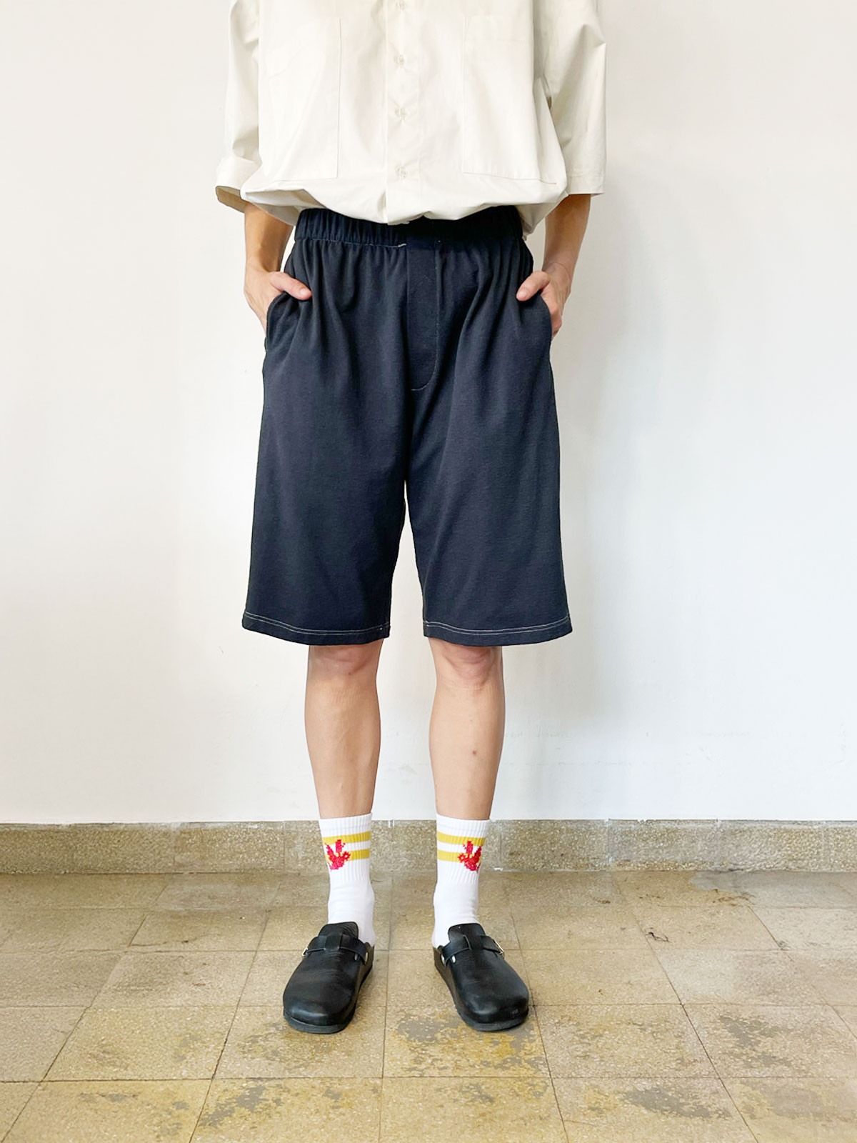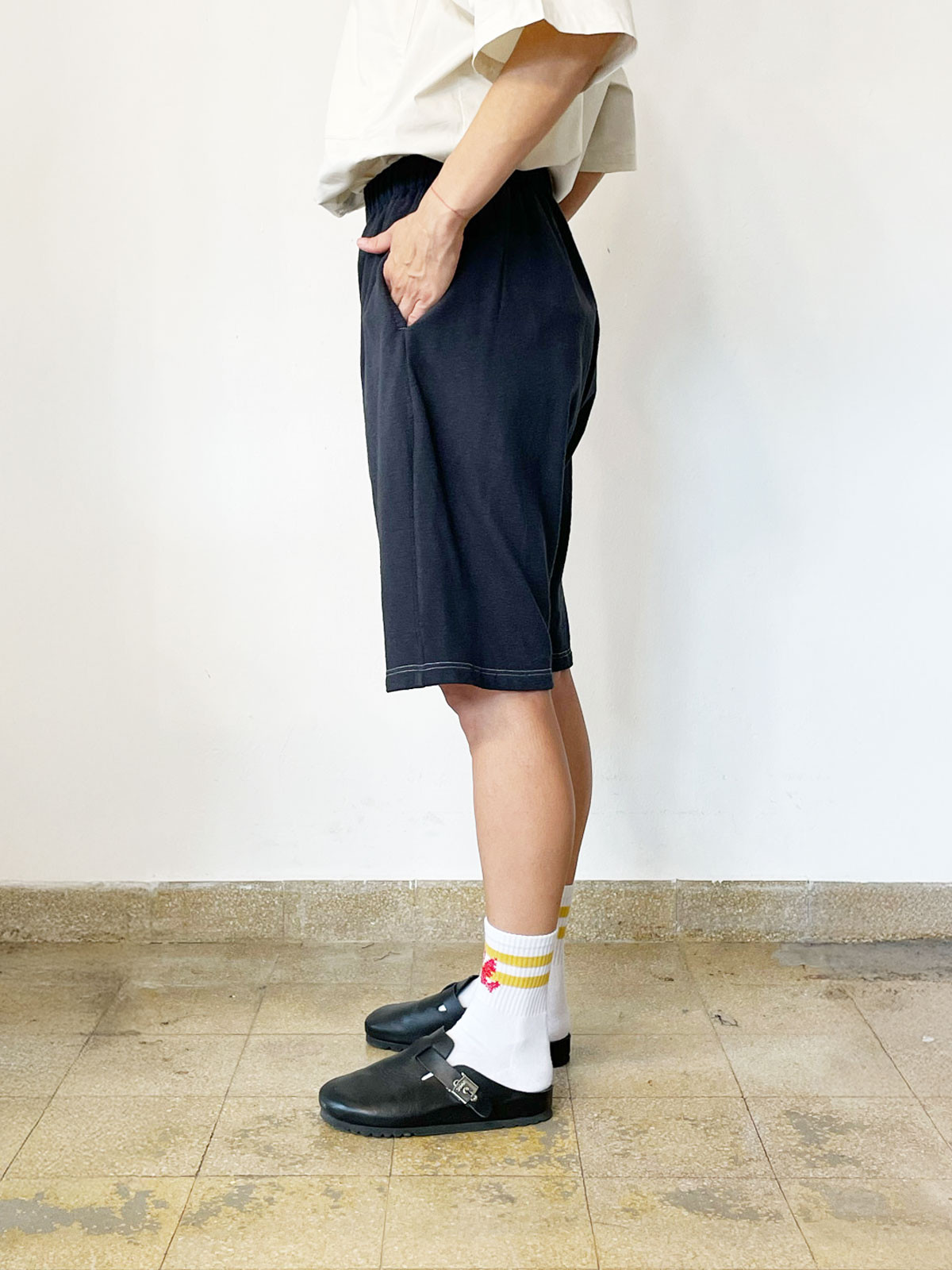 - Dark Blue/Grey relaxed silhouette shorts