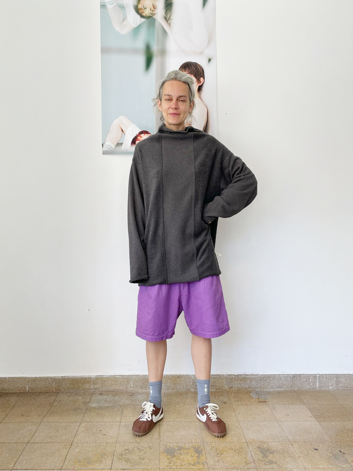 - Grey color relaxed silhouette sweatshirt