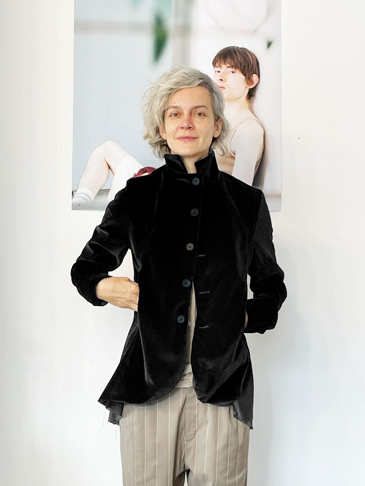 ג׳קט מחוייט מקטיפה שחורה