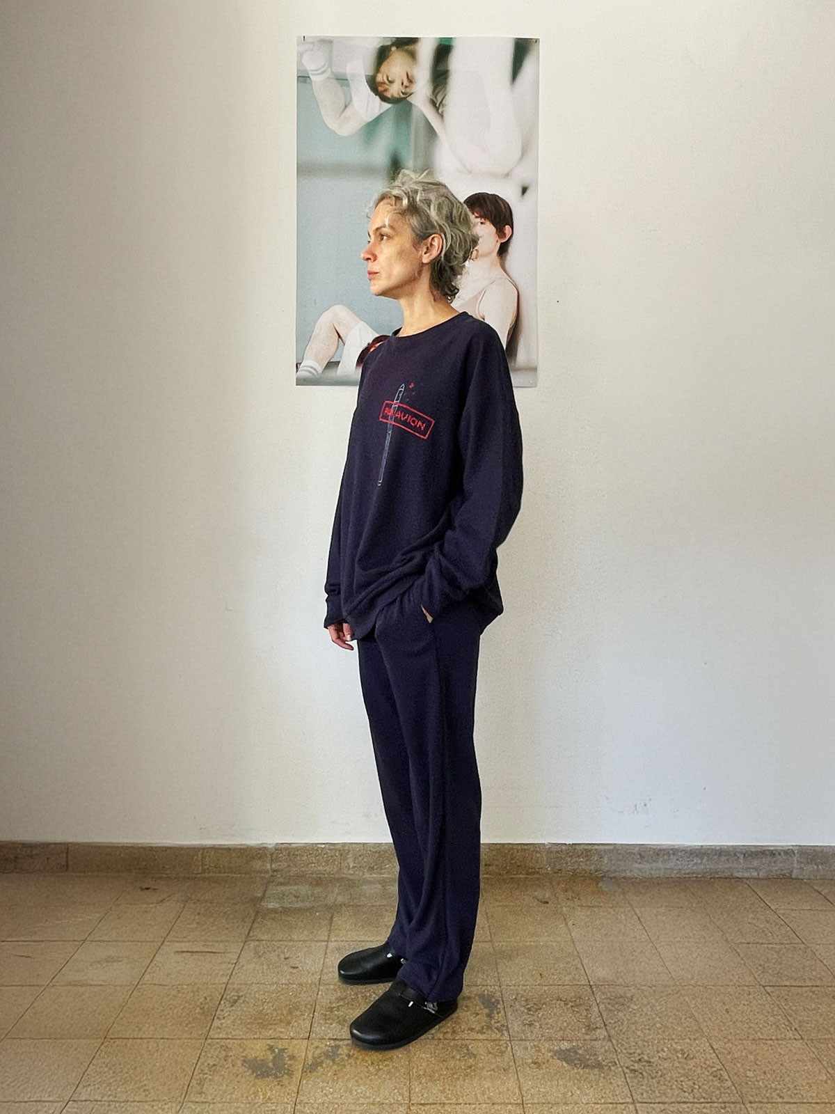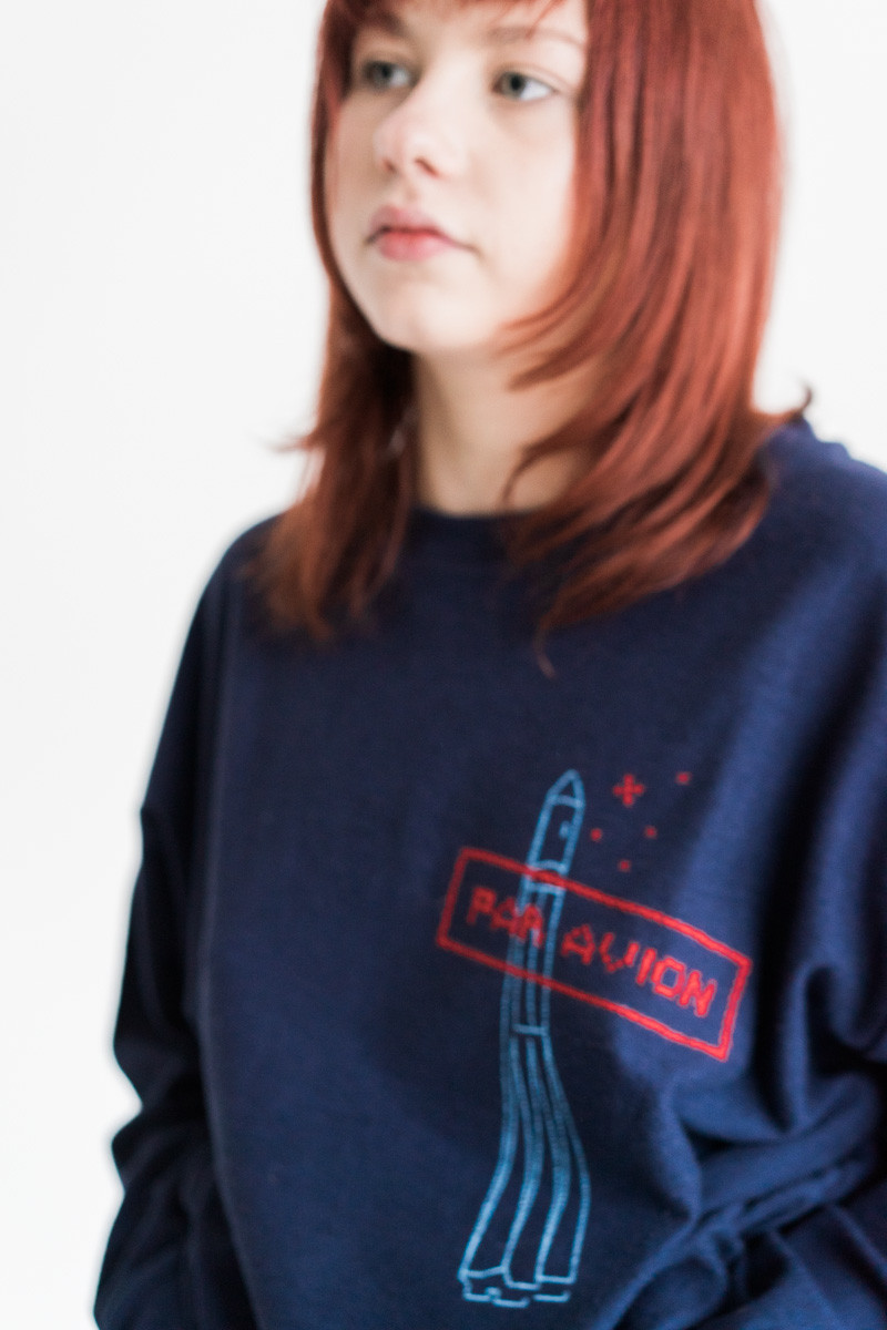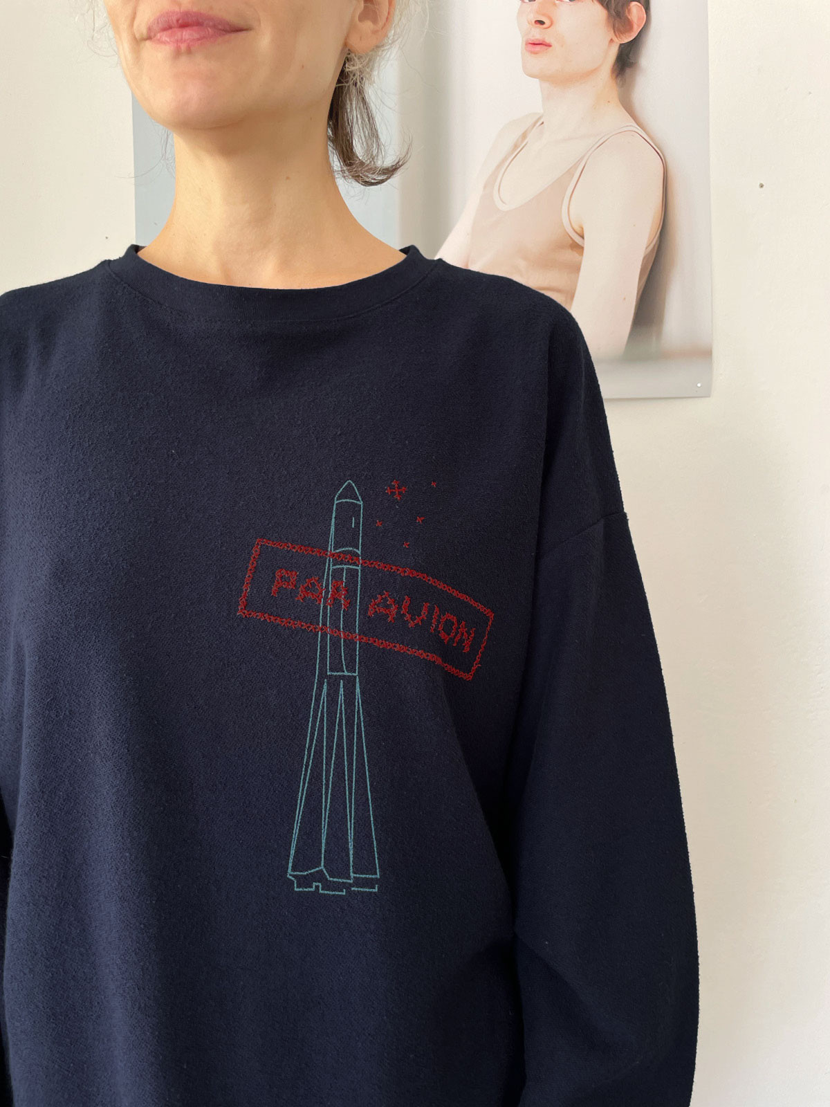 - הדפסה וריקמה ידנית מקדימה ובגב הסווטשירט