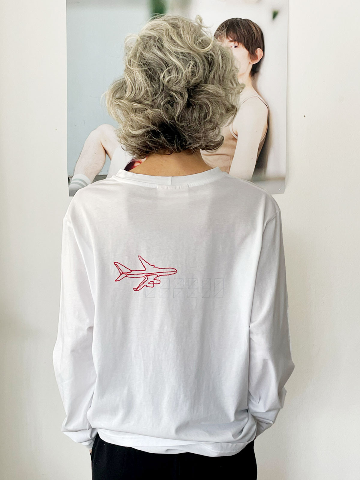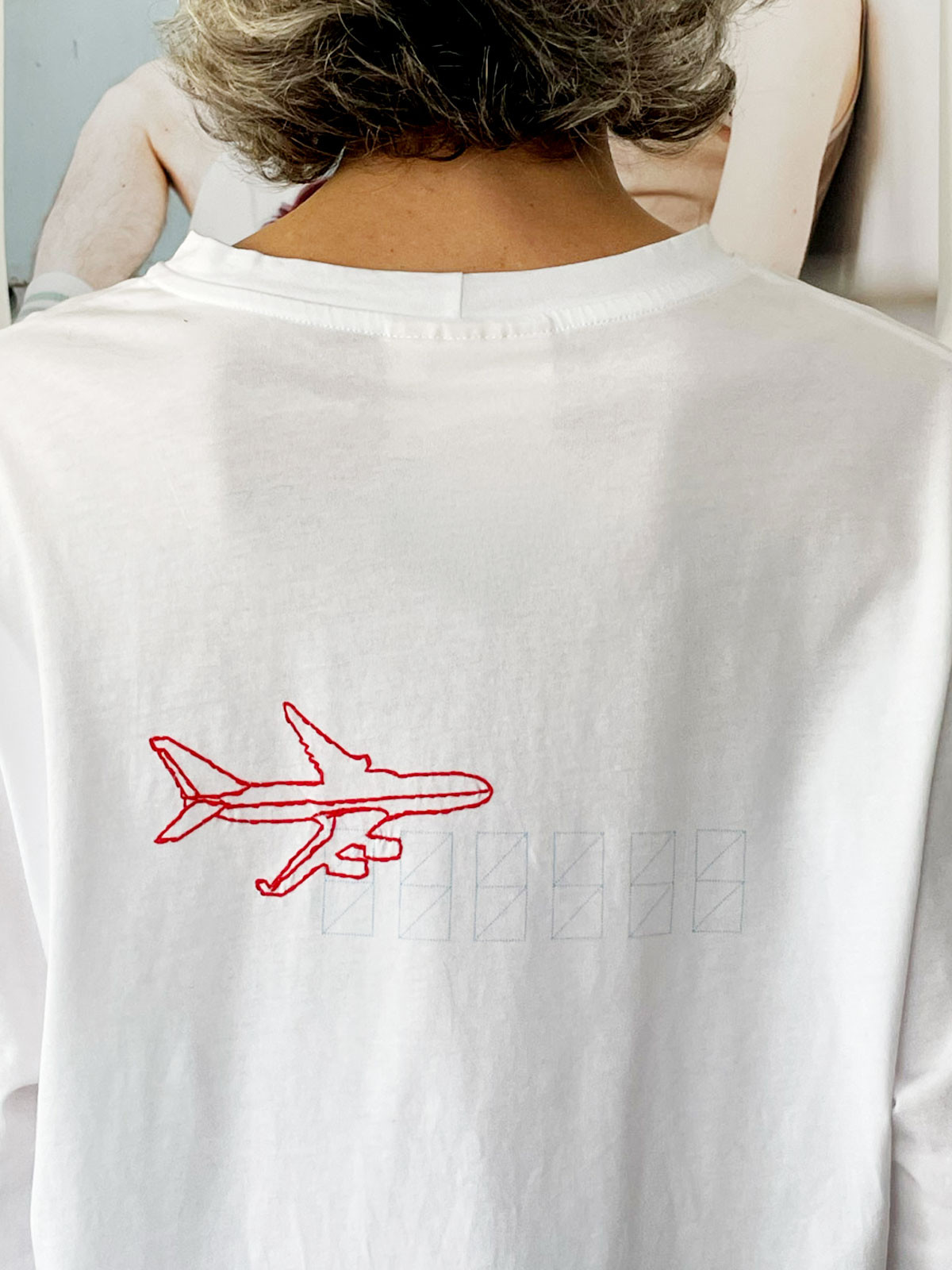 - הדפסה וריקמה של מטוס בגב הטי שרט